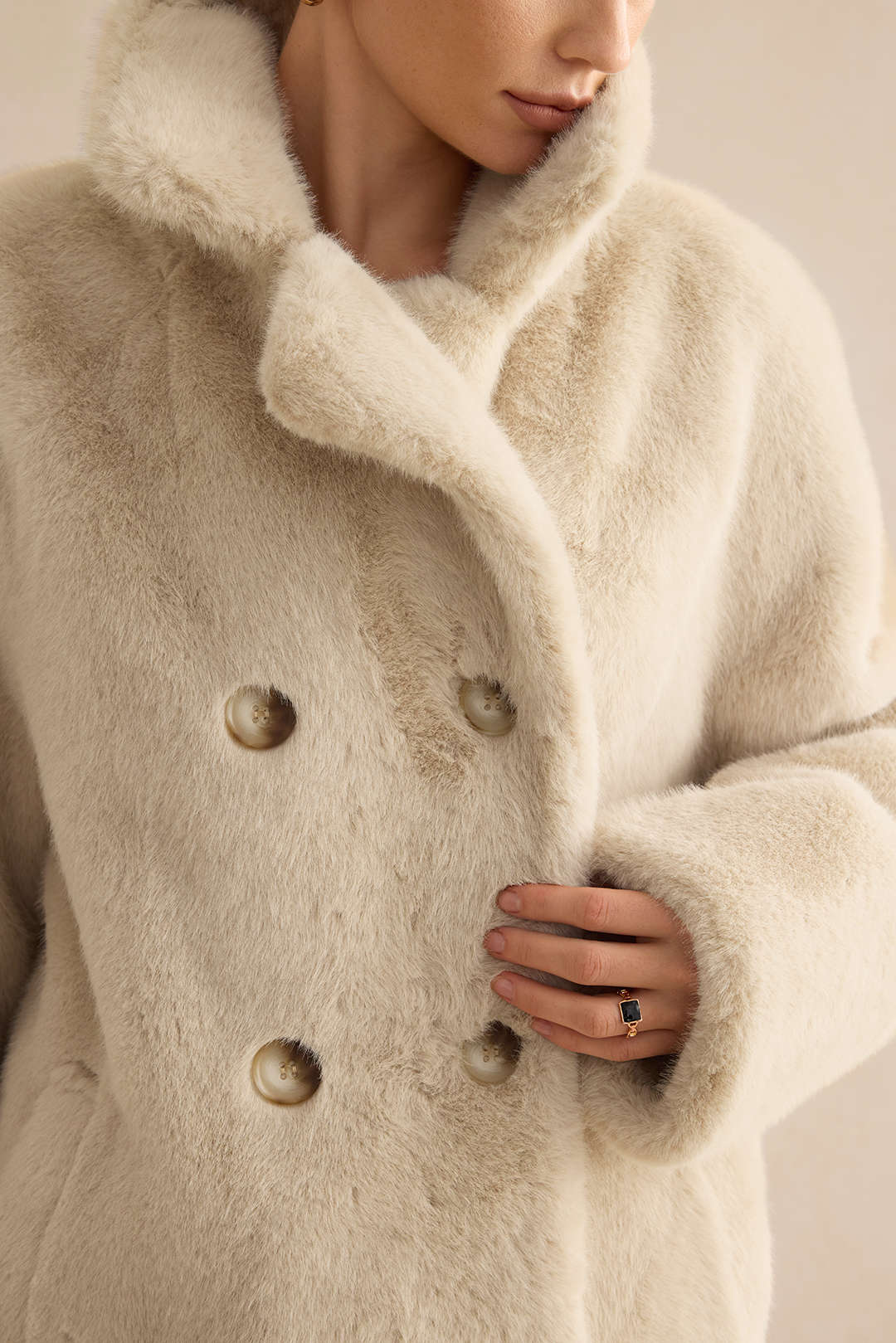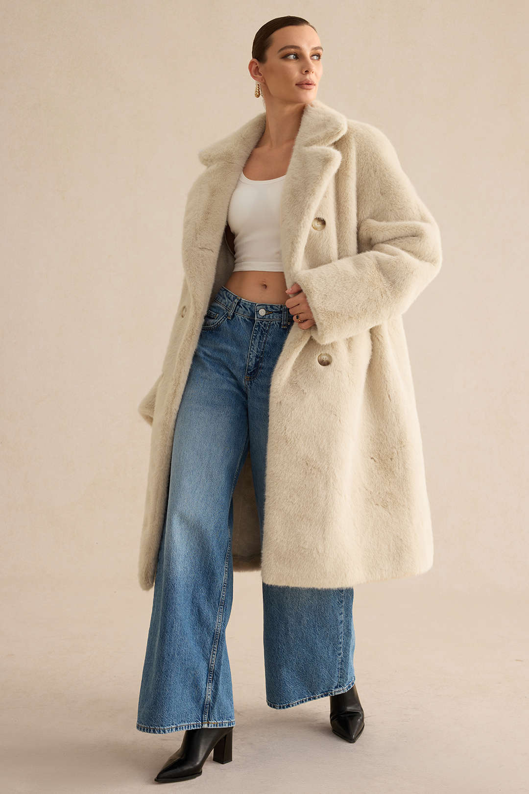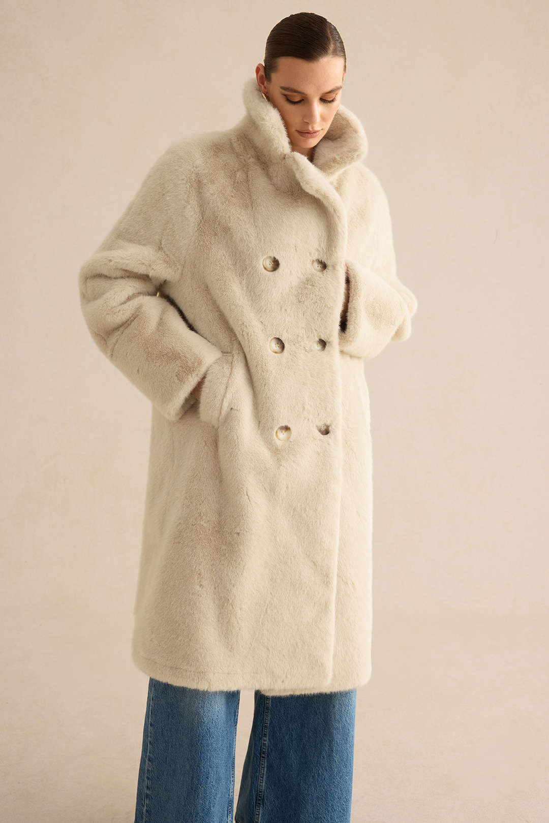Faux Fur Texture: Soft and dense faux fur adds a luxurious touch to the coat and provides warmth. The faux fur texture adapts comfortably to the body and does not compromise on its elegance.